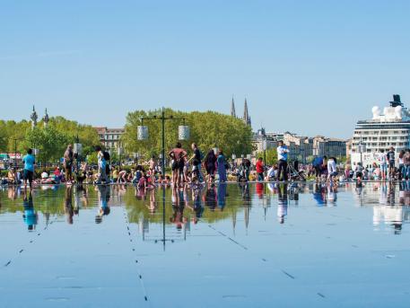 Gegenüber dem Place de la Bourse, zwischen dem Quai de la Douane und dem Quai Louis XVIII, ist der Wasserspiegel von Bordeaux zum meistfotografierten Ort der Stadt geworden. Wechselnde Effekte von Spiegel und Nebel, dieses spektakuläre Werk lädt zum Träumen und Wandern ein! Perfekt bei heißem Wetter, wird es zu einem echten Spielplatz für Kinder und Erwachsene!
