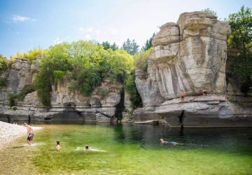 Ein herrliches Leben am Ufer der Ardèche! Der Campingplatz erstreckt sich, umringt von Weingärten, über 8 ha Natur und Schatten entlang des Ardèche Flusses. Mit direktem Zugang zum Fluss.