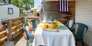 Camping 3* Familie und mit 2 Schritte vom Strand und den Geschäften beschattet. Schöne ruhige Lage mit der Familie zu entspannen und die frische Luft von der Atlantikküste im Süden der Bretagne.