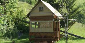 5 Chalets 2 bis 7 Personen zu vermieten voll möbliert und ausgestattet, Anhänger, alle Holzkabine mit 2-Bett-Sitzen, Trapperhütten, Tipi 4 Personen, Mongolischen Yurts, Orten zum Nacht, Wochenende, eine Woche ...