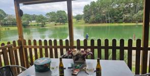 In de bar van camping Gaia Ecolodge kun je een cocktail drinken op het terras met uitzicht op het meer, of in een gezellig hoekje buiten de camping met uitzicht op het meer.